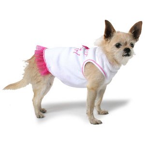 - Flower Girl Tulle Dog Dress. Your little Flower Girl will look beautiful wearing this cute dress! White cotton tank style dress features a tulle skirt and coordinating tulle flower accent. Features: - Super soft ribbed cotton with a touch of Lycra - Machine wash and dry - Made in USA Sizing: M: Length 12 - 15 in. | Weight 9 - 18 lbs.